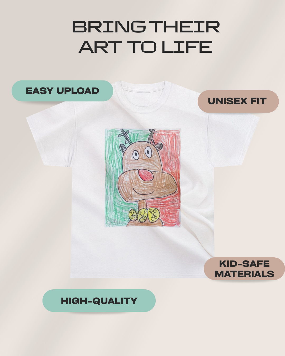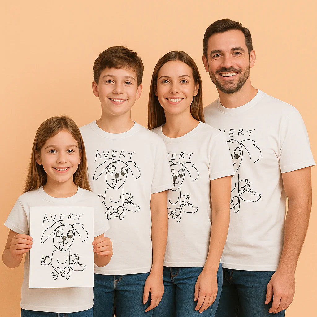 Turn your child’s artwork into a wearable keepsake! Our personalised T-shirts let you upload your little one’s drawing and transform it into a unique, high-quality print. Perfect for gifts, celebrations, or capturing precious memories—each shirt becomes a one-of-a-kind masterpiece designed by your kid!